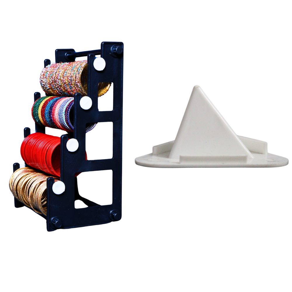 Tired of tangled bangles and misplaced phones? This elegant combo offers a sleek bangle stand for your jewelry and a sturdy mobile holder for hands-free convenience. Say goodbye to messy dressers and missed calls.